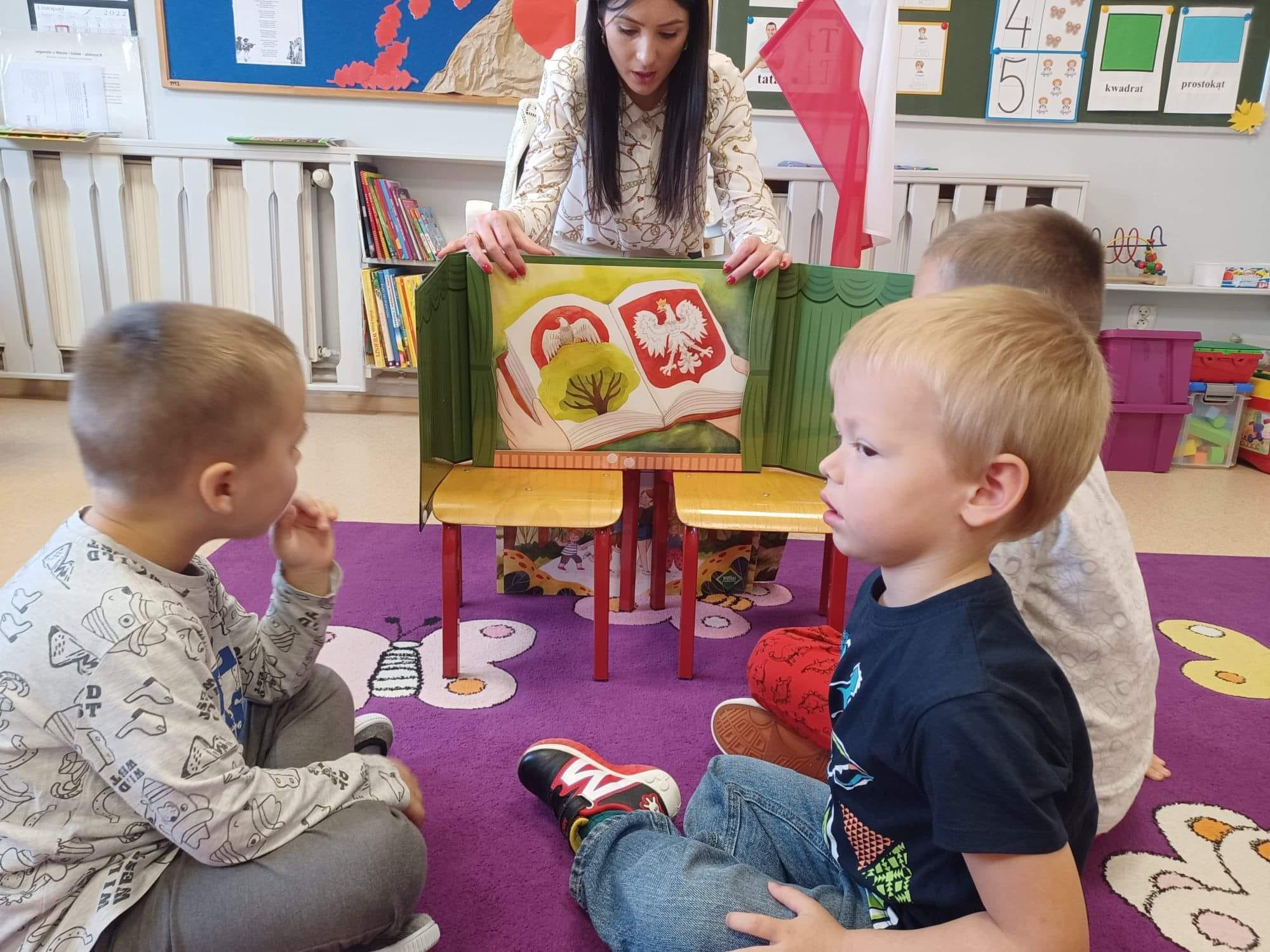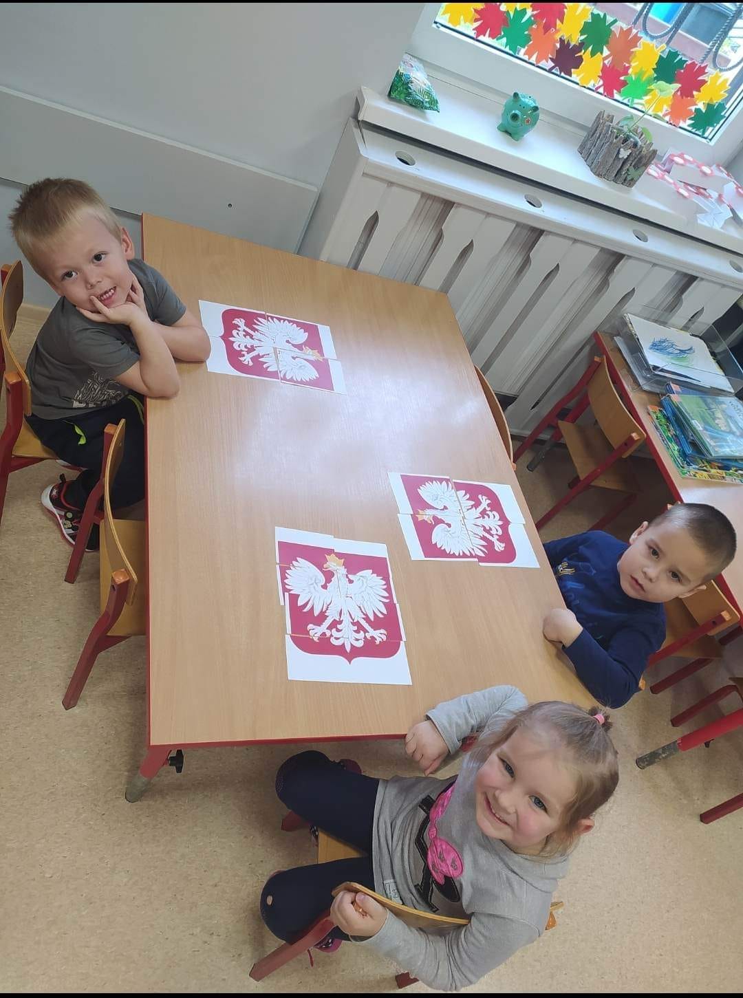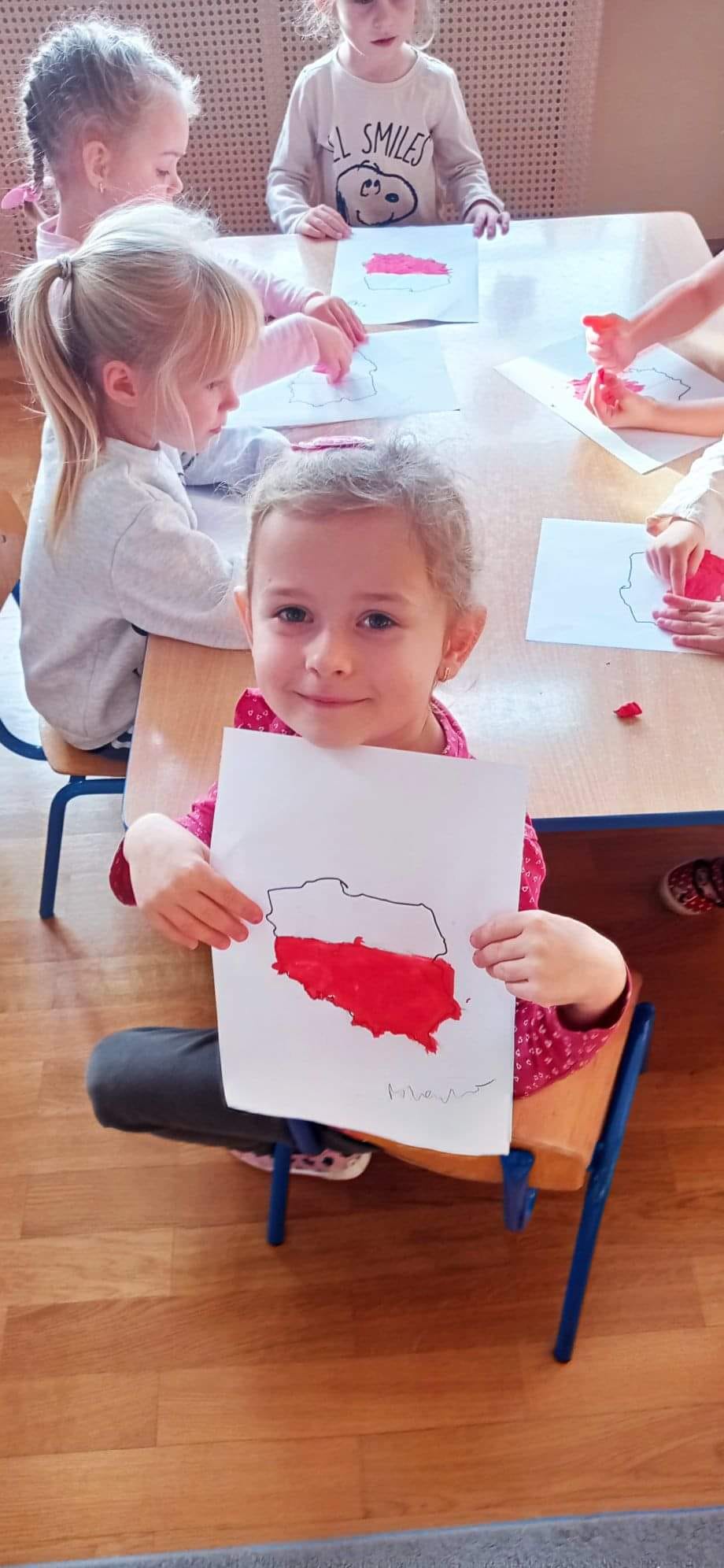 W minionym tygodniu realizowaliśmy tematykę związaną z Polską. Podczas zajęć dzieci wzbogaciły słownictwo o nowe pojęcia związane z poznawaniem swojego kraju, utrwalały nazwy symboli narodowych. Wykorzystując różne techniki plastyczne wykonały prace związane z Polską. Dnia 10 listopada 2022 przyłączyliśmy się do Ogólnopolskiej Akcji „Szkoła do Hymnu”. Jest to akcja ogłoszona przez Ministerstwo Edukacji i Nauki, polegająca na odśpiewaniu hymnu państwowego w dzień poprzedzający Narodowe Święto Niepodległości. Dokładnie o symbolicznej godzinie 11:11 wszyscy uroczyście odśpiewali w swoich grupach hymn narodowy „Mazurka Dąbrowskiego”. Wszyscy pamiętaliśmy tego dnia o uroczystym ubiorze oraz prawidłowej postawie podczas śpiewu. Dzieci z grupy III, IV i V wybrały się też na spacer pod pomnik Józefa Piłsudskiego, aby złożyć hołd wielkiemu Polakowi przed zbliżającym się Świętem Niepodległości.